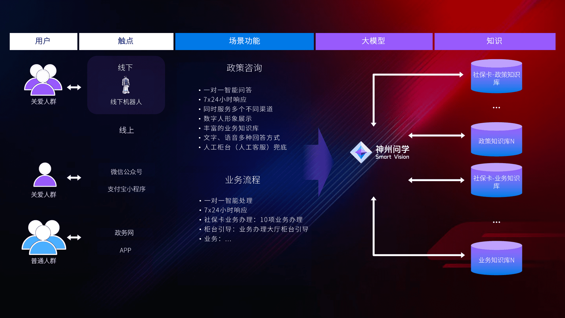 • 线上线下全覆盖:线上提供微信公众号、、、、支付宝小程序、、、、政务网、、app多种渠道,,,与线下机器人形成完整服务体系。。。。
